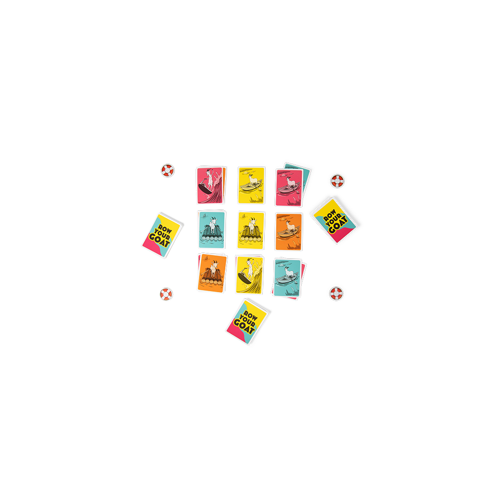 Get rid of your cards by placing them in a grid. The second you see a matching set of 3 in a row, slap the nearest Lifesaver. Hurry, there's only a few of them. And if you don't grab one fast enough, you're left collecting cards. When you're down to one card, scream "ROW MY GOAT", play your card, and slap a Lifesaver to win.