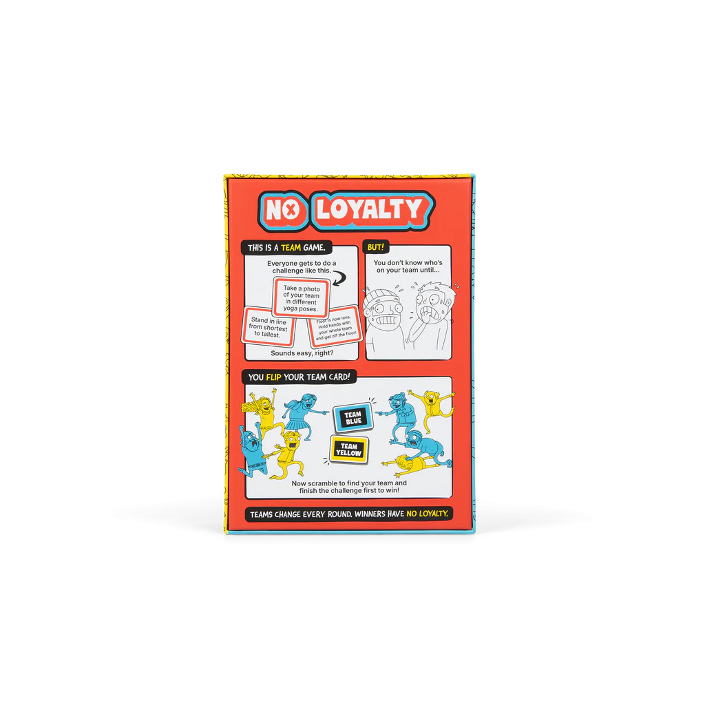No Loyalty is a chaotic, laugh-out-loud party game where teams shuffle every round, alliances are temporary, and only one player walks away with five tokens and ultimate bragging rights. Flip, team up, complete the challenge, and betray again next round.