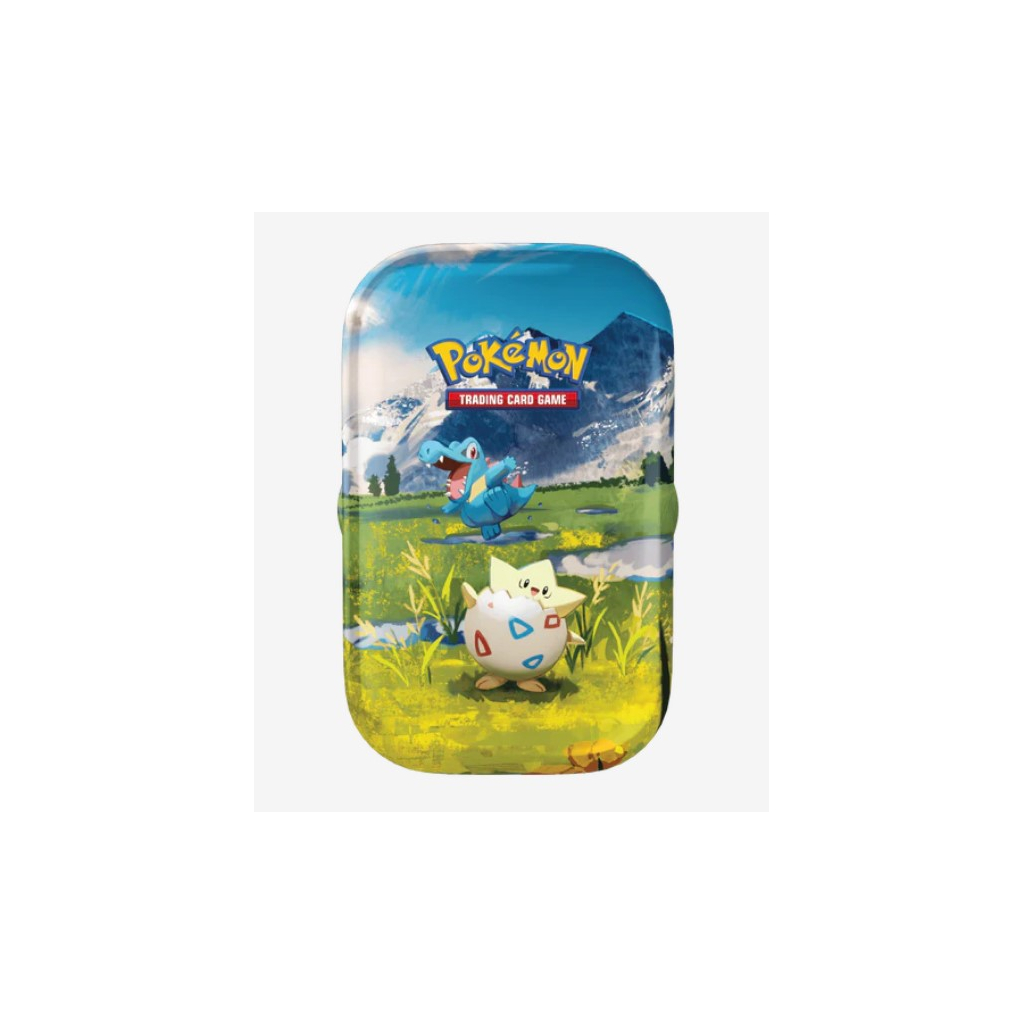A Pokémon art card showing the art from this Mini Tin—you can collect and combine all 5!